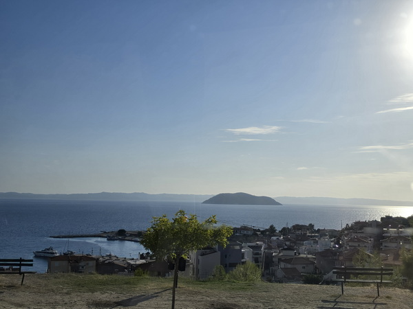 Saloniki Bus to Carras Transfer Blick auf Insel und Neos Marmaras Saloniki Bus to Hotel Porto Carras Meliton Transfer