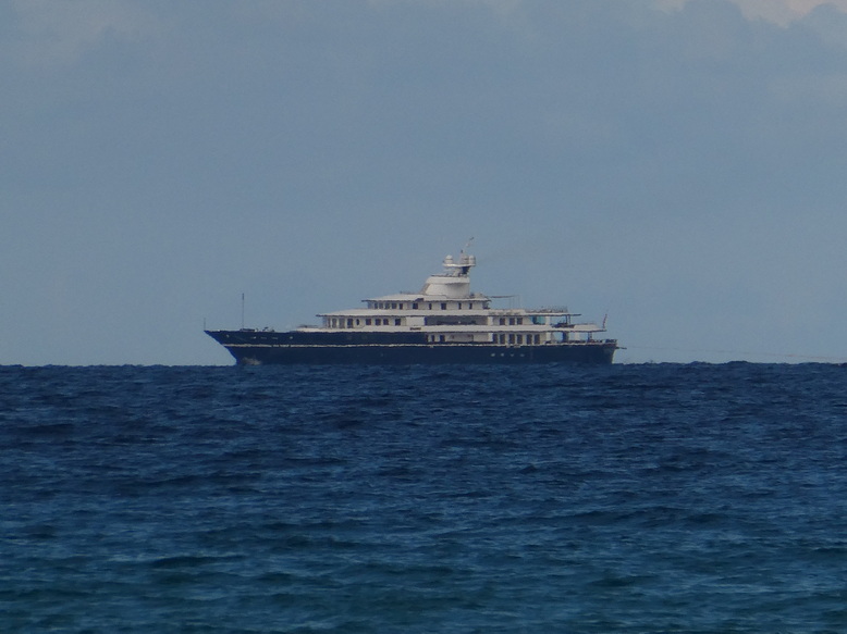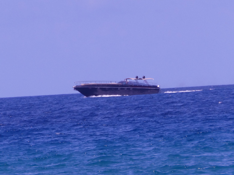 Strandleben Glyfada Beach Fette Mororyacht Strand von  Marriott Hotel domes of corfu Glyfada Beach