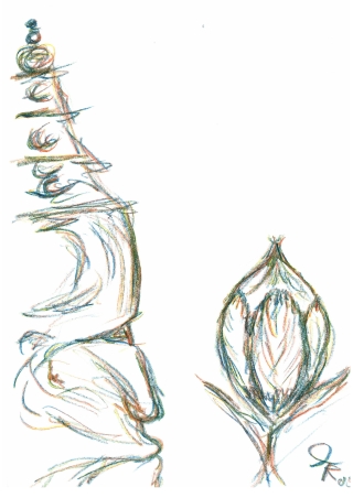 Fünfter Budda schaut auf Lotusblüte Sechster Budda sieht auf das Strandbild der Krabben im Sand
