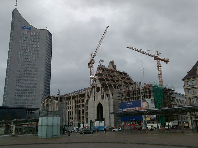 MDR Turm und neue Uni mit Paulinerkirche die 1968 von SEd abgerissen wurde
