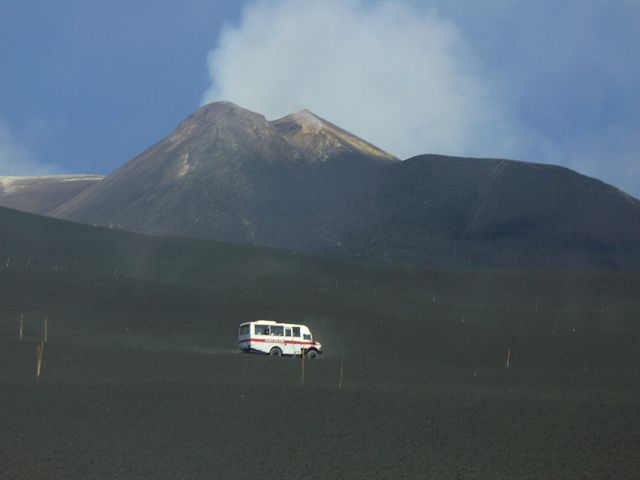 | Mit Bus, Seilbahn und Truck den Vulkan erklimmen: Erleben Sie den höchsten zugänglichen Punkt des ätna! Eine ca. 90-minütige Landschaftsfahrt führt Sie zum Silvestri-Krater auf rund 2000 m Höhe, von dem aus sich ein herrliches Panorama bietet. Von hier aus bringt Sie die Seilbahn nach ca. 15 Minuten auf 2500 m. Mit speziellen BMW-Trucks geht es noch höher auf 2700 – 2900 m, je nach Aktivität des Vulkans. Mit einem Bergführer unternehmen Sie eine kurze Wanderung entlang des Kraterrands. | Piccolo Rifugio ; Monti De Fiore, Monti Silvestri, Monti Calcarazzi |