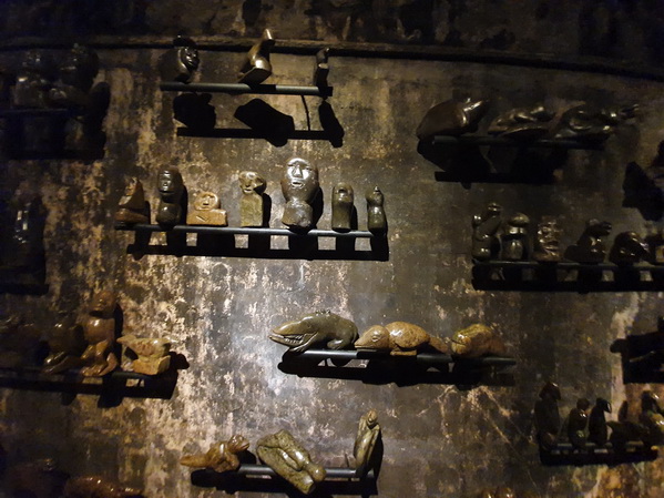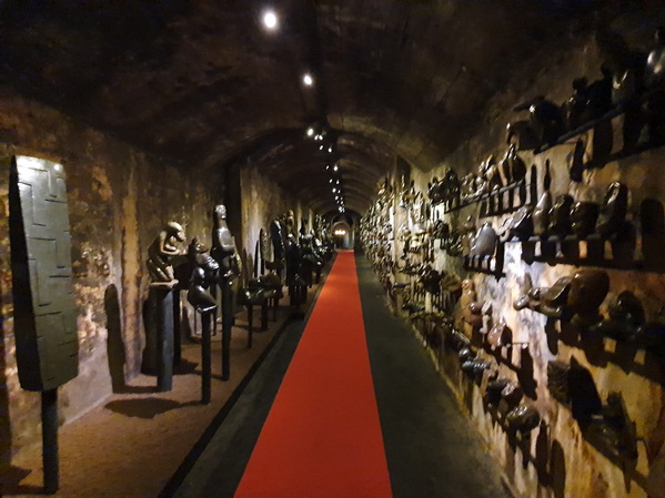 Shona-Skulpturen Specksteinfiguren von Künstlern aus Zimbabwe Aliança Underground Museum Shona = Kore Kore, Zezuru, Katanga, Manyika, Ndau und Rozvi Das Aliança Underground Museum befindet sich in Sangalhos (Gemeinde Anadia), im Distrikt Aveiro, Portugal. : Rua do Comércio 444, 3781-908 Sangalhos. Es ist das erste Untergrund-Museum Portugals, das in den historischen Weinkellern der Marke Aliança Vinhos de Portugal eingerichtet wurde. Kombination von Wein-/Sektkellern und Kunst / Kultur: Das Museum integriert die Weinherstellung (Reifung von Weinen, Sekten, Branntweinen) mit künstlerischen und naturwissenschaftlichen Sammlungen. Acht bzw. neun permanente Sammlungen, darunter Archäologie, Ethnografie (z. B. afrikanisch), Mineralogie, Paläontologie, Azulejos (portugiesische Fliesen), Keramik der Region Caldas da Rainha und indische Kunst. Geführte Touren unter Tage: Die Besichtigungen finden in den Kellerräumen statt, was eine besondere Atmosphäre schafft – konstant kühl, eindrucksvoll beleuchtet etc |