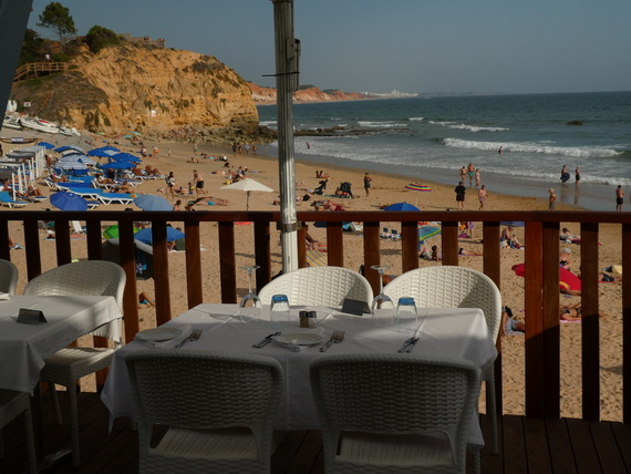 Olhos de Água Beach Liegen am Fischerdorfstrand vor Le Cigale