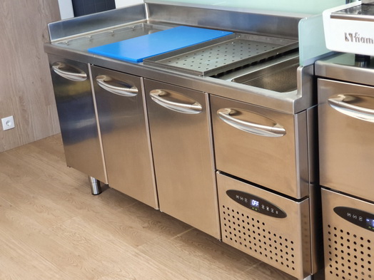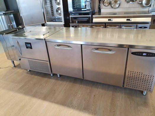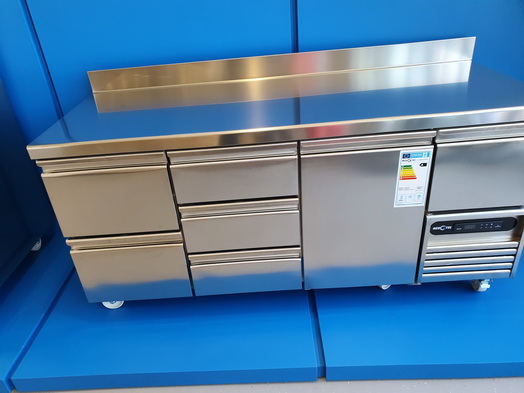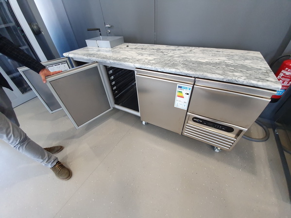 | Mercatus Agueda Showroom Cooling Experts Kühltisch 2 Züge 3 x 1/3 Züge 1 Türe und eine ungekühlte Schublade über dem Aggregat | Mercatus Agueda Showroom Cooling Experts Kühltisch 2 Türen und eine ungekühlte Schublade über dem Aggregat |