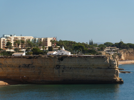 Bis Faro schauen Praia Rocha mit der Kapelle auf der Klippe