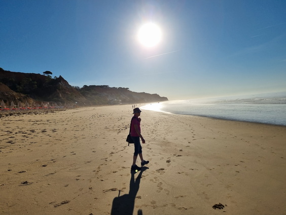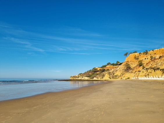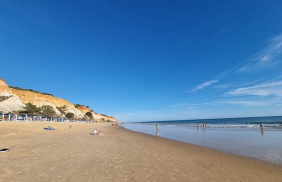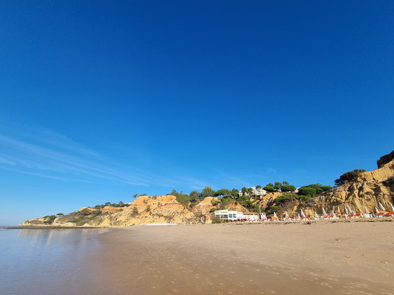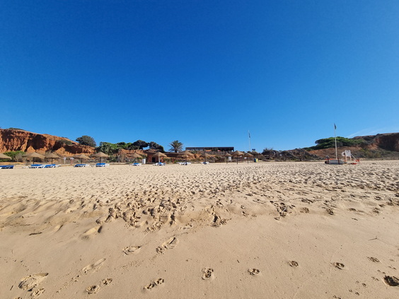 Falesia Puresand Beach am Ende geht in den Flachenteil nach Villamoura Beachclub und Riesen Yachthafen