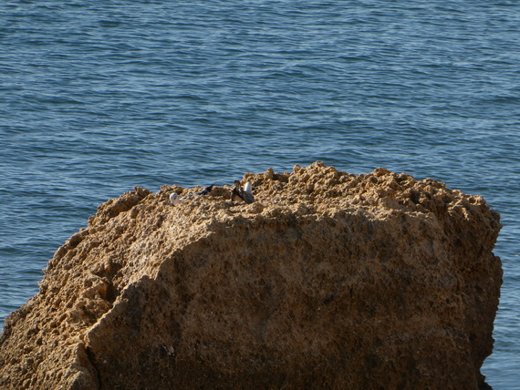 | die Felsklippen der Algarve liegender Budda mit Nackenstütze Weingott Bacchus in der Algarve oder liegender Budda | die Felsklippen der Algarve Porches Küstenweg |