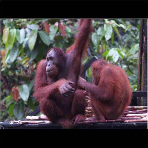 | Baumriesen | Wilder Orang bei den Gomantong Höhlen |