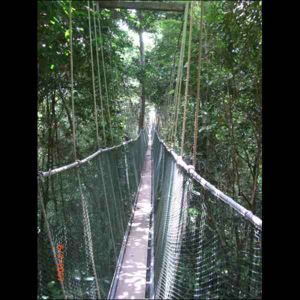 in 25 m Höhe Hängebrücke zwischen Baumriesen Canopy Skywalk da kann einem leicht schwindelig werden   :-)