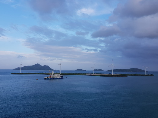 | Mahe Seychellen Monkey & Fox Island Housekeeping Work | Mahe Seychelles Thunfischrutsche für Beladung in die Container |