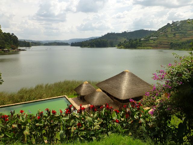 | Lake Bunyoni Privatjetty gegenüber | Lake Bunyoni Lodge Birds Nest Zimmerblick |
