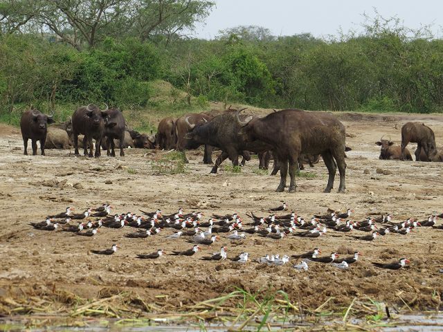 Buffalo + African Skimmer Afrikanischer Scherenschnabel African Skimmer Afrikanischer Scherenschnabel