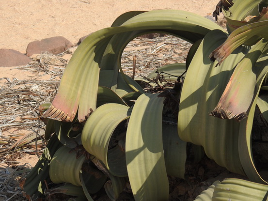 Die Welwitschia (Welwitschia mirabilis) ist eine der faszinierendsten und einzigartigsten Pflanzen der Welt. Sie ist ein lebendes Fossil und wächst hauptsächlich in den Wüstenregionen Namibias und Angola, in der extrem trockenen Namib-Wüste, die als eine der ältesten Wüsten der Erde gilt. Merkmale der Welwitschia: