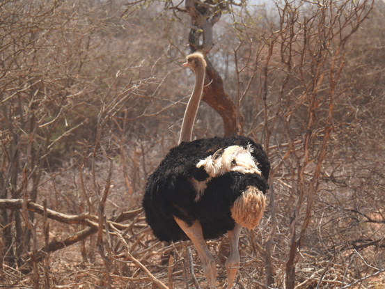 Strauß hat einen langen Hals, der ihm hilft, in der Savanne nach