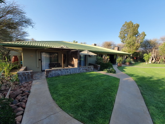 Rezeption. Beide haben eine Veranda mit Blick auf das kleinere Wasserloch