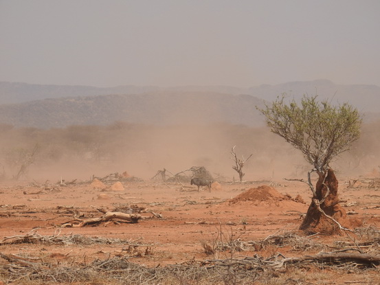 | Hippolake Wasserloch Elefant Camp Lake Hippo | Hippolake Wasserloch Elefant Camp Lake Hippo Windhose wirbelt Staub auf |