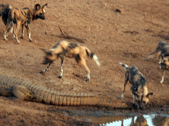 | erindi Wilddogs Painted Dog Afrikanischer Wildhund | erindi Wilddogs Pride of 22 Afrikanischer Wildhund kidding the croc |