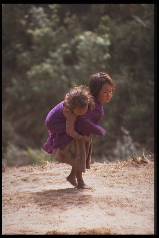 | Nepal Kind natürlich ohne Schuhe auf 3.000 m trage des anderen Leid |