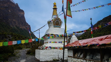 | Phokara | Gebetsmühlen und Fahnen am Annapurna |