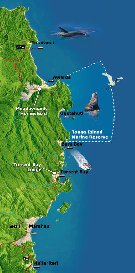 Der Abel-Tasman-Nationalpark ist ein Naturschutzgebiet an der Nordküste von Neuseelands Südinsel. Er ist für den Abel Tasman Coast Track bekannt, einen langen Wanderweg, der über Berge und an Stränden entlangführt und sich von Marahau im Süden bis Wainui im Norden erstreckt. An der Landzunge am Aussichtspunkt Separation Point sind Kolonien Neuseeländischer Seebären zu Hause. Zwergpinguine, Tümmler und Robben findet man im Meeresschutzgebiet "Tonga Island Marine Reserve von google