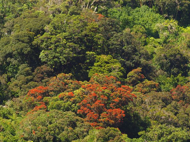 gut beobachten lassen. Durch die starken Regenfälle liegt eine mehrere Meter dicke Süßwasserschicht, die durch die ausgewaschenen Pflanzenreste Licht absorbiert, auf dem Meerwasser. Daher finden sich hier Korallen, die normalerweise nur in größeren Tiefen anzutreffen sind, bereits wenige Meter unter der Wasseroberfläche. |