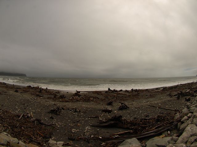 the ocean is a striking feature of Bruce Bay’s landscape.
