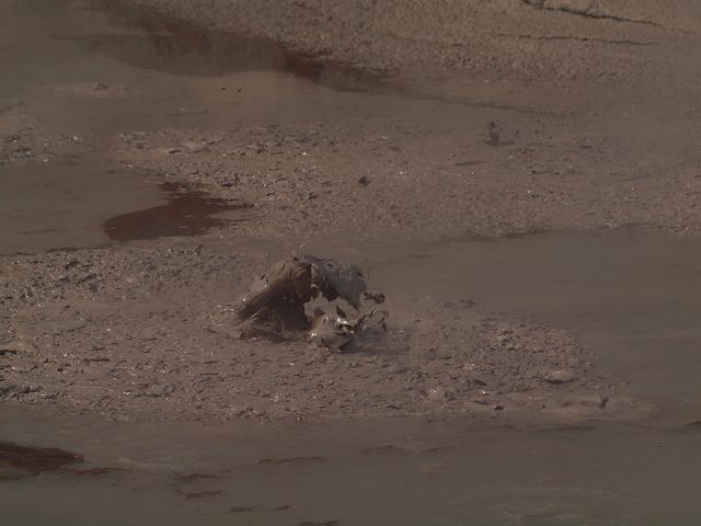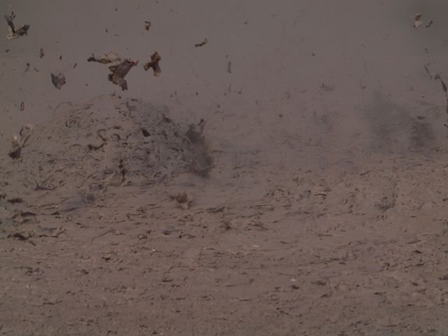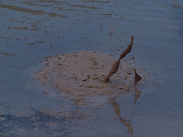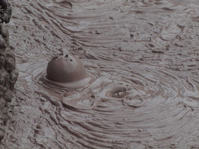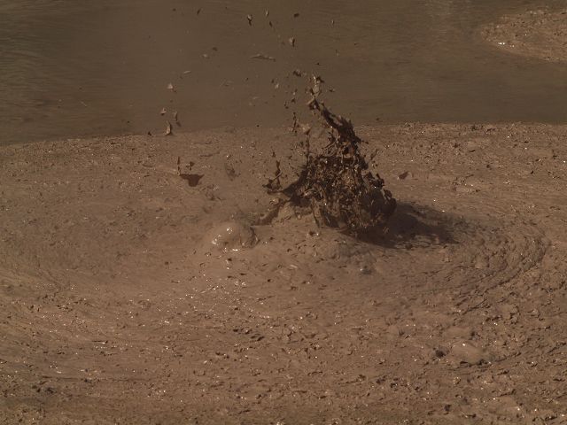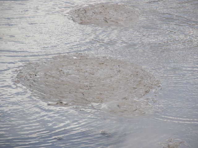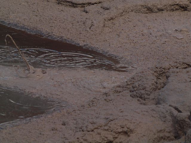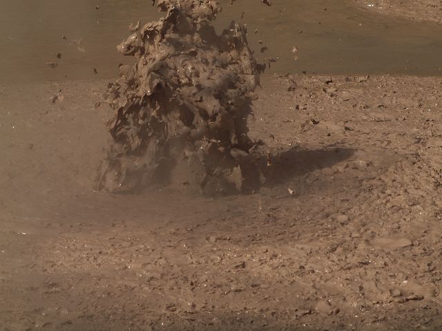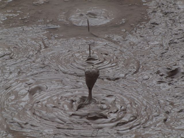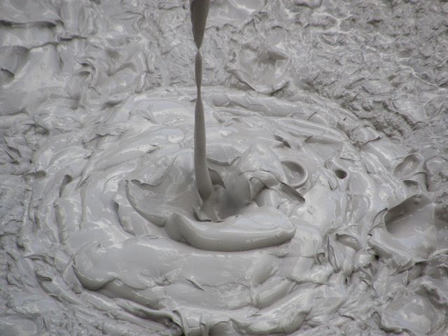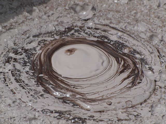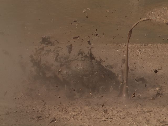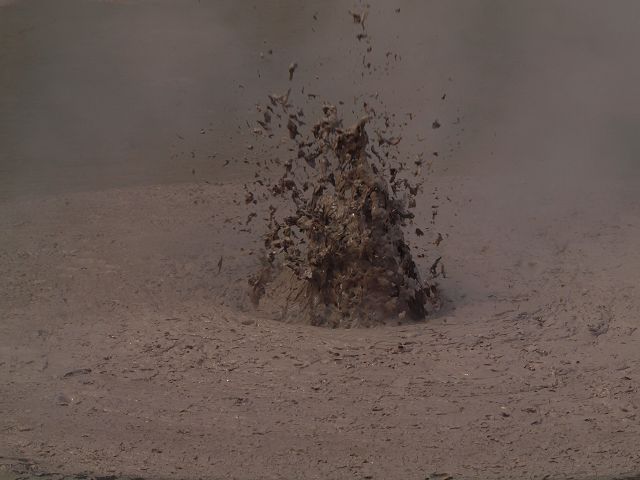 "Mudbomb" (Schlammbombe) auf das Phänomen, bei dem Schlamm aus einem