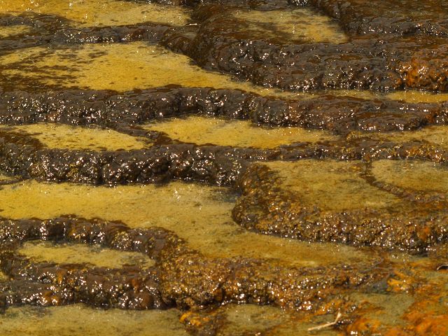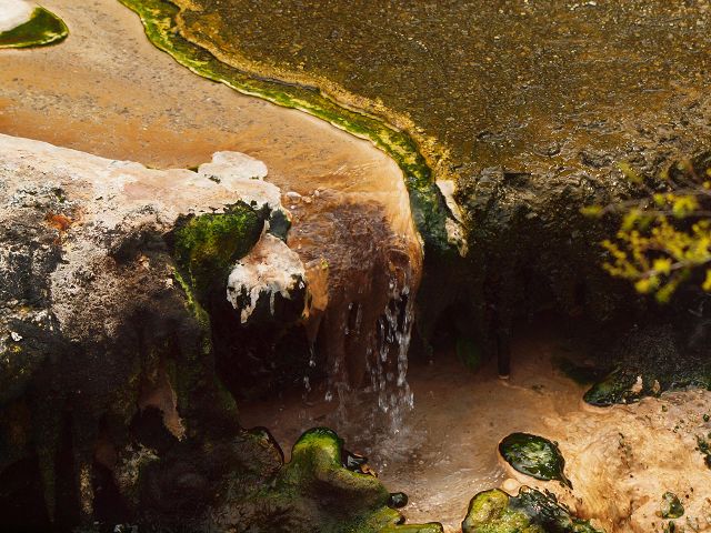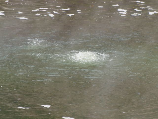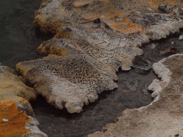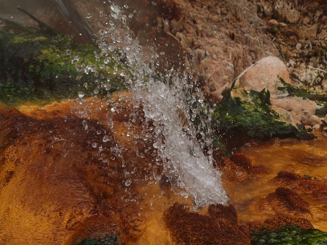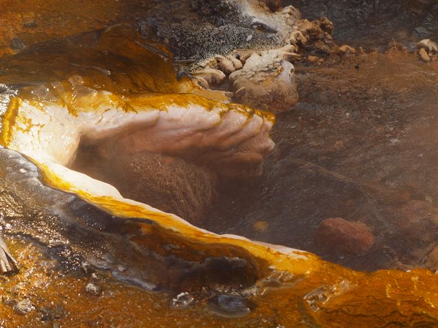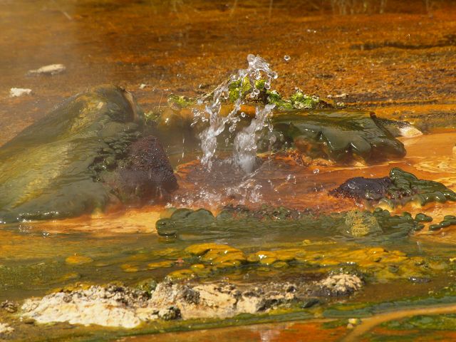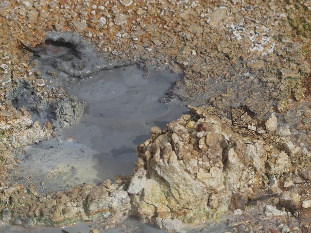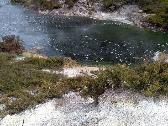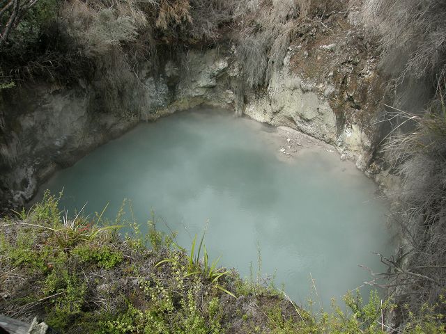 vent, filled with bubbling grayish-blue water that is usually enveloped in a