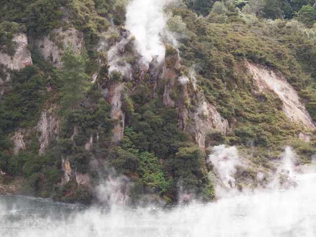 second-largest hot lake in the world, it is a flooded fumarole, or volcanic