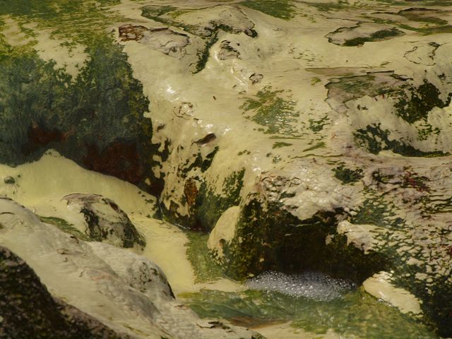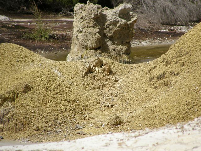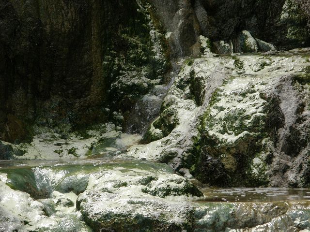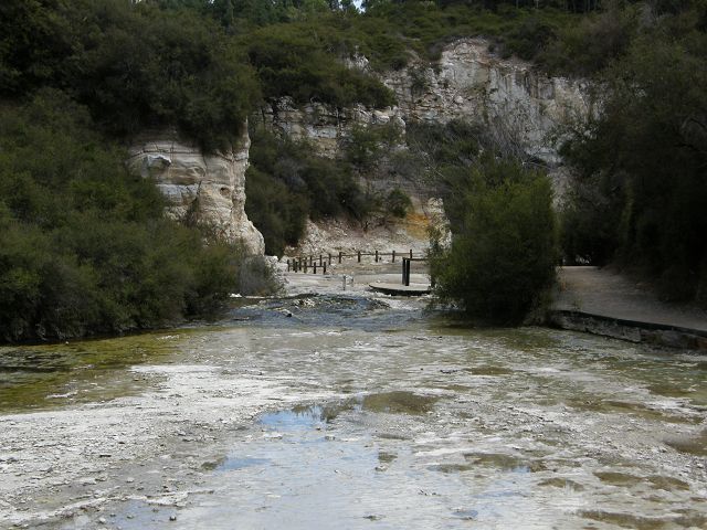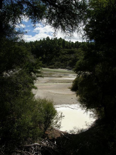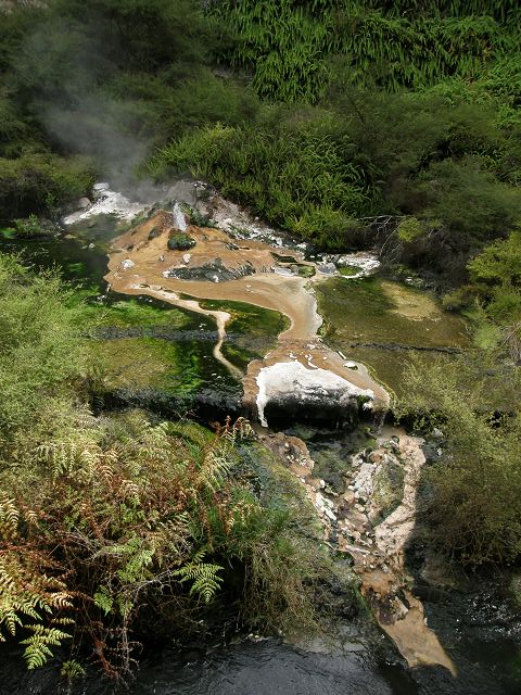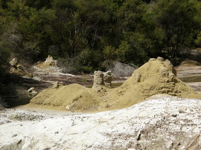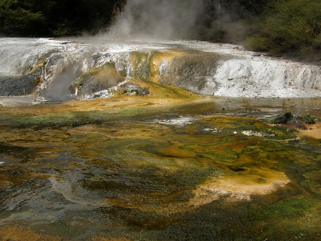 Marble Terrace" (Marmor Terasse) mit fast 100 Grad heissem, abfliessendem Wasser "Warbrick Terraces" Aus diesem unübersehbar kalkhaltigen Zufluss bauen sich sukzessive die beeindruckenden Sinterterrassen der Warbrick Terraces auf Warbrick Terraces Mördermuschelquelle Lake Rotomahana mit Mt.Tarawera Bootstour auf dem Lake Rotomahana: . |