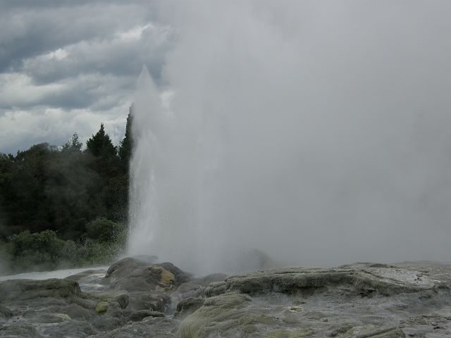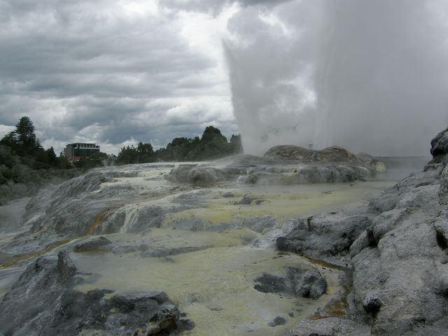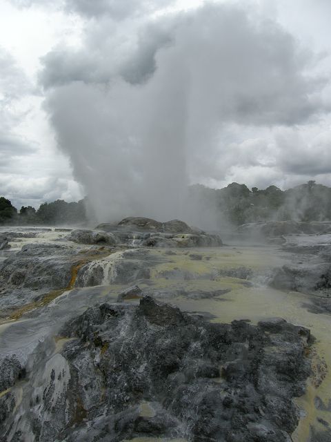 bricht oft kurz vor oder nach dem Pohutu aus.