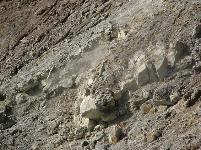 flows, craters, steam vents, and fumaroles. The stark, barren landscape