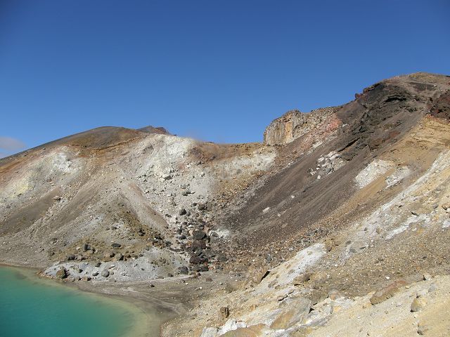 surrounding terrain is filled with volcanic craters, steam vents, and