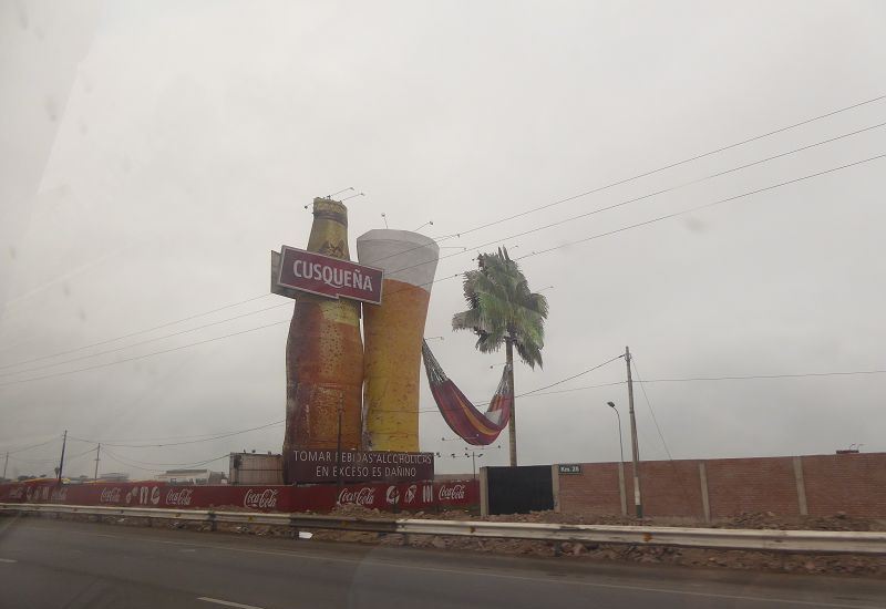 Panamericana Peru Cusquena Bierwerbung an der Nebelküste