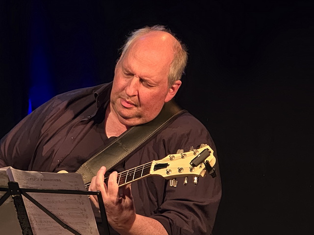 Zwei Große ihres Fachs an ihren Instrumenten. Frank Haunschild ist Professor an der Musikhochschule Köln für Jazzgitarre, Matthias Strucken ist einer der versiertesten Vibraphon- und Marimba-