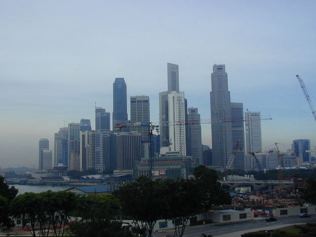 Skyline Singapur vom Hotel Oriental aus gesehen ( Feb. 2000)