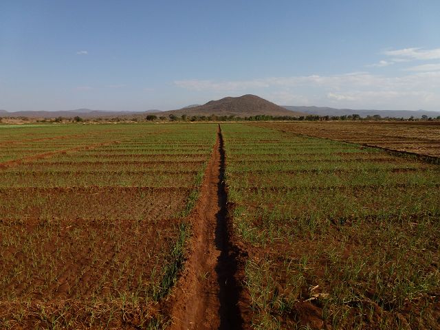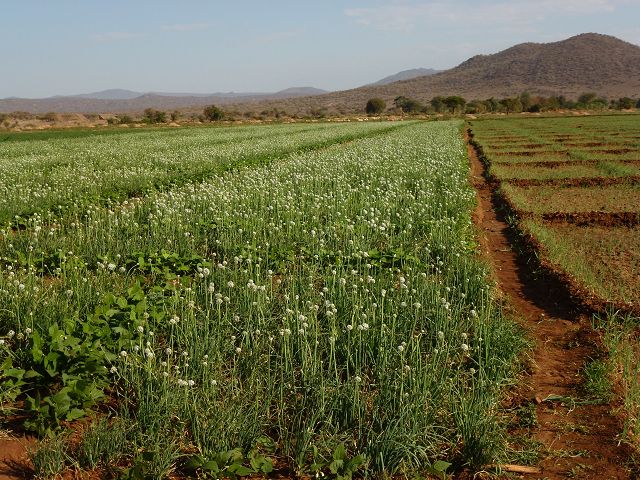 Zwiebelfelder mit Bewässerung  Punda Milia Kandelaberbäume