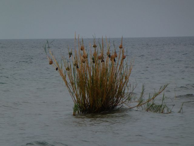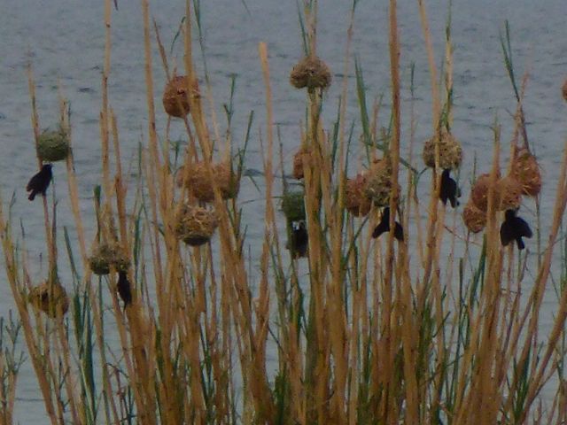 | Webervögel mit Ihrem sichernem Nistplatz | Weaverbirdsnest |