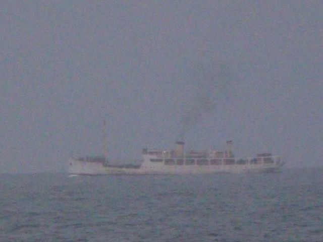 weit draussen war die Liemba zu erkennen  ehemals Kannonenboot  Mahale Mountains Kungwe Beach LodgeKungwe Beach Lodge
