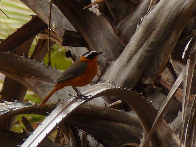 Zelte befinden sich im Schatten von Doum-Palmen und anderen Bäumen. Vom Boot aus