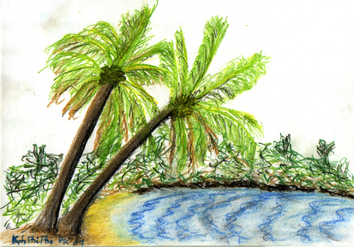 | Koh pee pee island Beach kokospalme Coconuttreepalm Skizzen Ölkreide Skizzen Ölkreide Thailandgemälde Thailandskizzen |