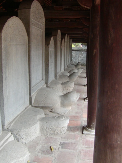 Mandarinstempel Schildkröte trägt Steintafel mit den Aufgaben der Mandarine