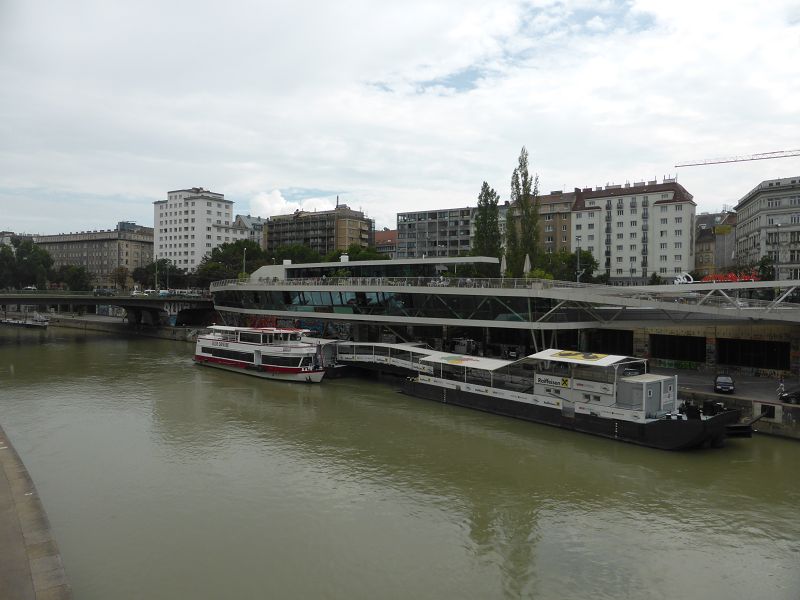 Wien Marienbrücke Donau Blick auf Cafe Motto am Fluss Schwedenplatz 2 motto.at |