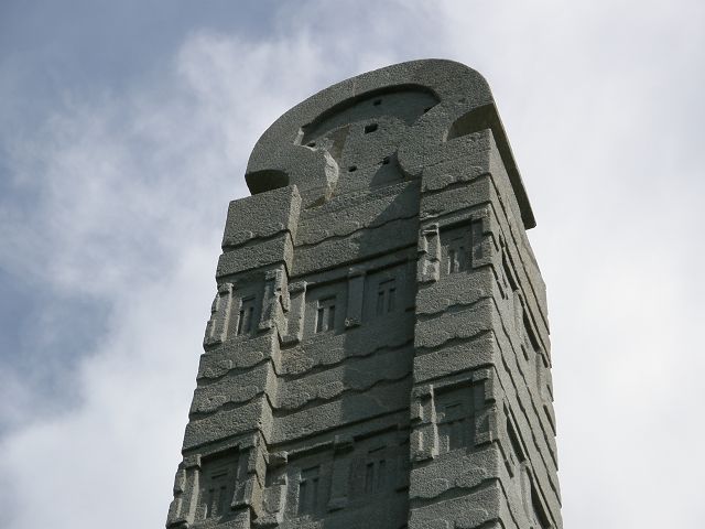 Äthiopiens. In Axum befindet sich Stelenpark. Die höchste noch stehende Stele misst über 20 Meter, und eine 33 Meter liegende Stele betrachten. Die Fassaden zeigen Stockwerke mit nachgebildeten Türen und Fenstern, in ihrem Aussehen ähneln sie Hochhäusern. Paralellen zu Jemenbauten |