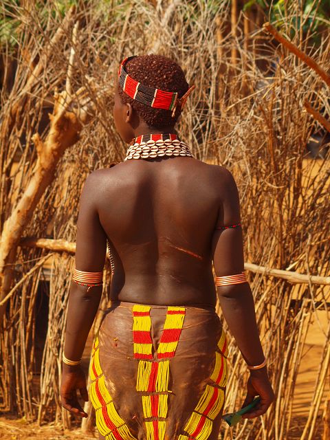 back Hamer zurück Äthiopien Back Ethiopia Hamer in Dimeka Hamar People Dimeka Markt Hamar Amar Amer