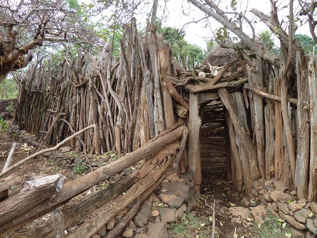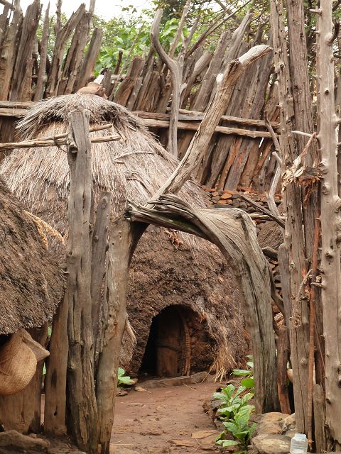 Waga Waga  Totenwächter   oben rechts Konso Kino Eingang zum Konsodorf