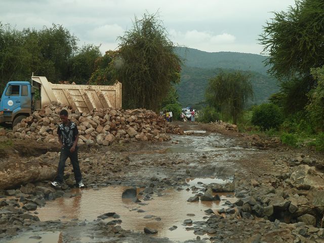 | Das war einmal die Strasse Arba Minch Addis | der kleine Fluss hatte mal eben die Strasse über Nacht weggespült |