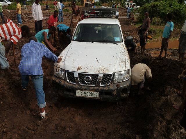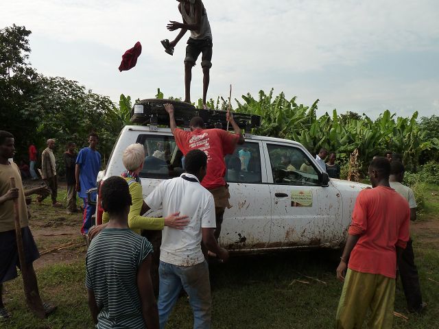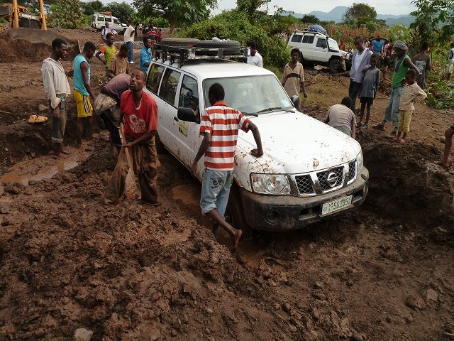 | wir sind dann mit unserem Patrol durch Bananenfeld gefahren ..... | .........dann hingen wir fest |
