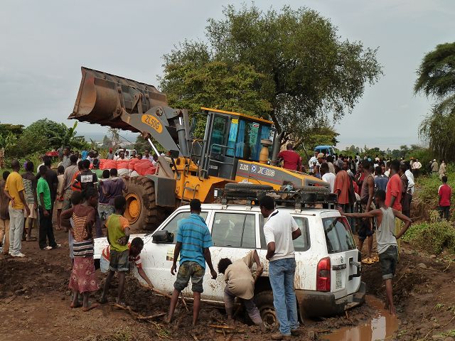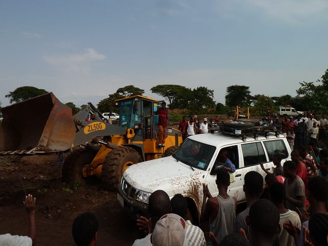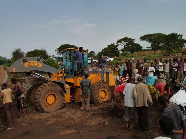 | erst wurde dann mit der Schaufel der Toyota rausgezogen | dann war unser Patrol dran |