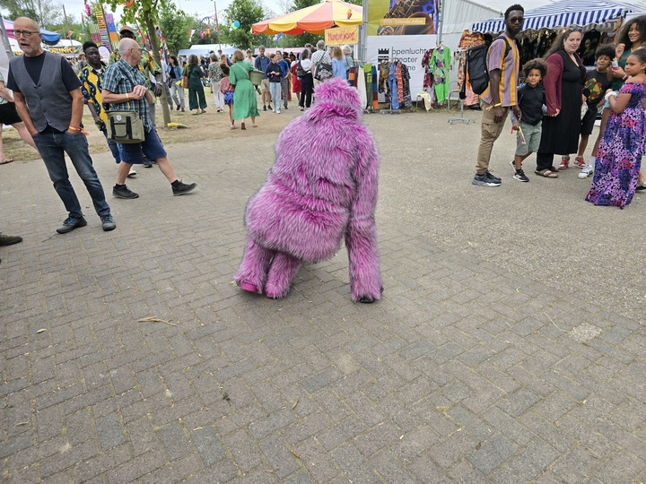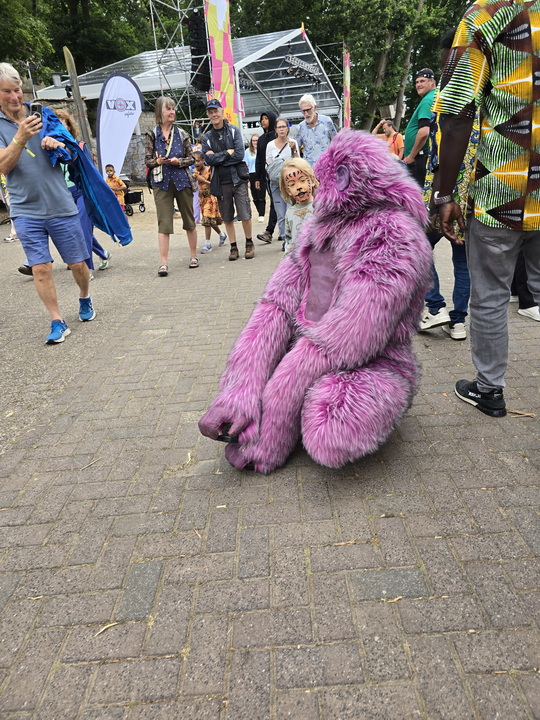 Festplatz vor dem Regen Walking Act Lila Gorilla  Golila ~ der lila Gorilla~ Golila ist ein sehr seltenes und besonderes Tier, auf dem ganzen Planeten gibt es nur einen lila Gorilla! Golila ist ein sehr sozialer, neugieriger und sanfter Affe. Dieses süße Tier spielt gerne, obwohl er manchmal auch sehr faul ist.